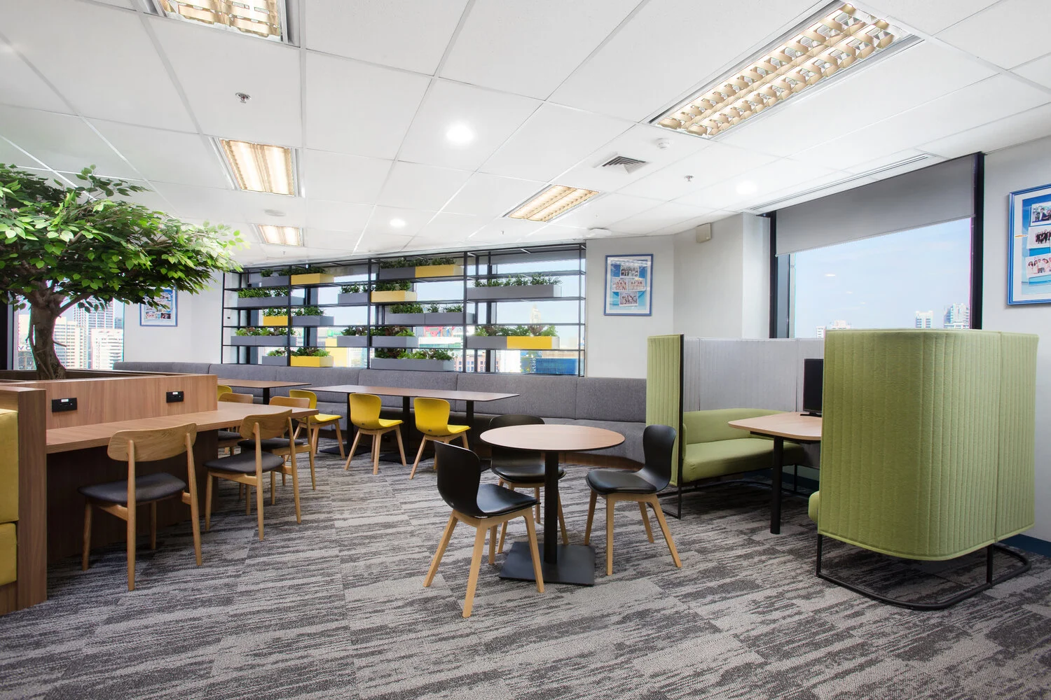 This space reflected the client’s core values of simplicity, while providing workplace zoning. The breakout/collaboration area incorporated playful colors & furniture to create a sense of ease & sharing among P&G’s employees when utilizing this space.