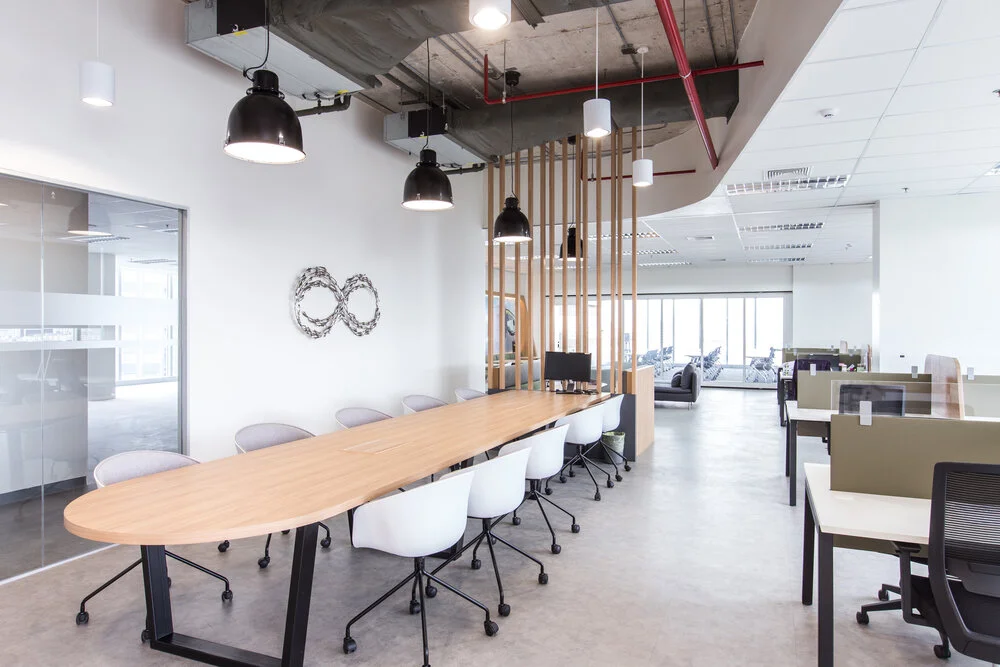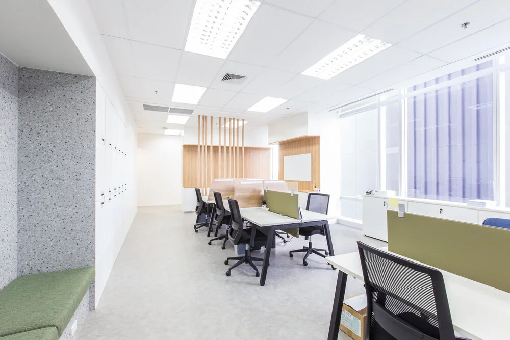 The designer incorporates the use of the materials produced by the client such as concrete, terrazzo, stone, & sand in order to enhance the identity of the company in their workspace. Designed & built during the height of the pandemic, cleanliness, waste reduction, & a clean desk policy through separate storage spaces for the employees were included.